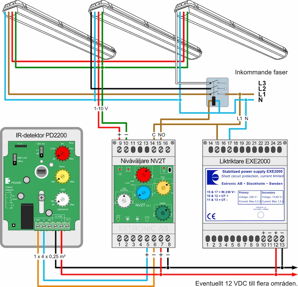 Har man har en äldre anläggning med lysrörsarmaturer och till exempel 1-10V styrning så kan man på ett enkelt sätt uppgradera anläggningen, då detektorerna oftast inte behöver bytas ut.