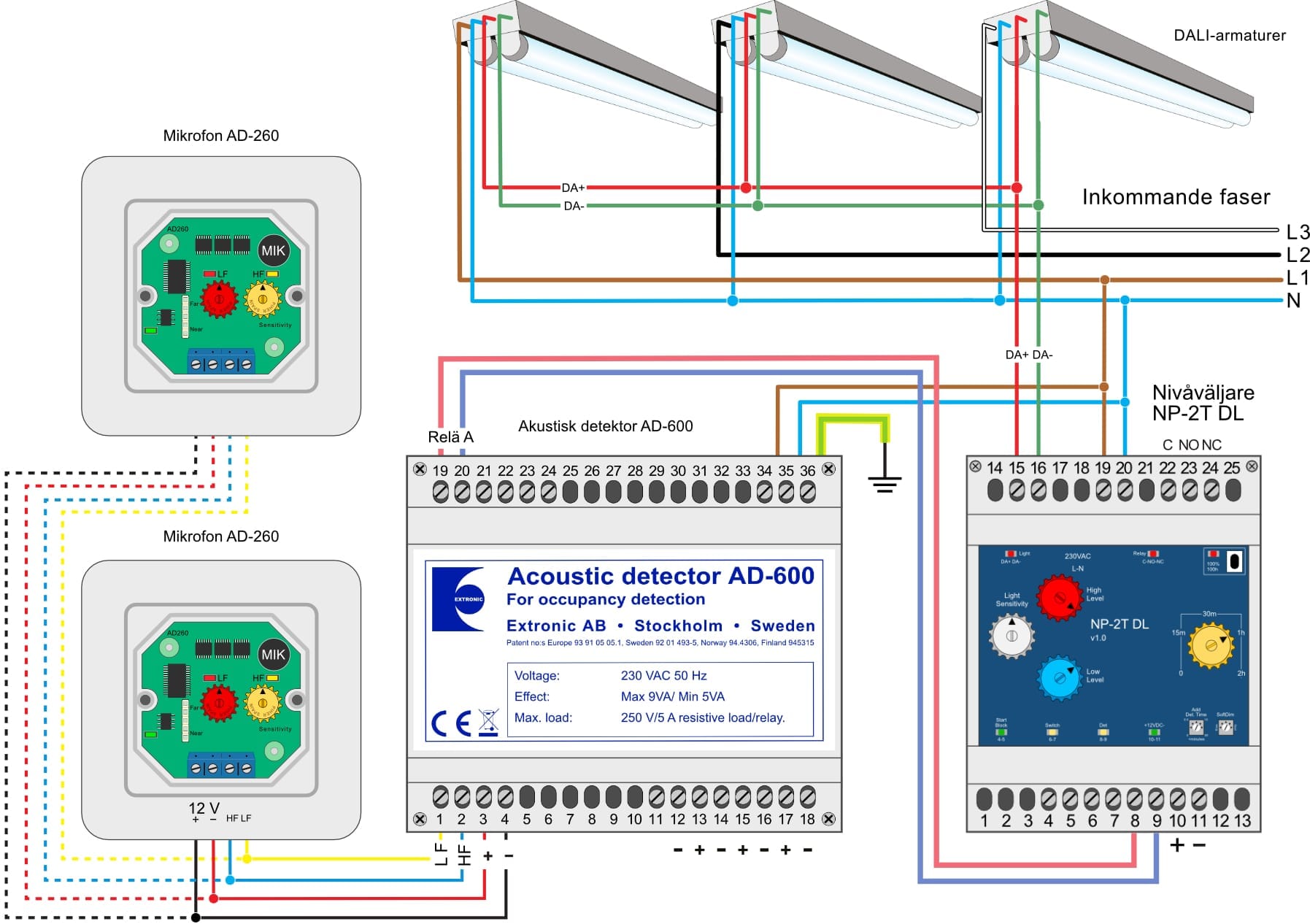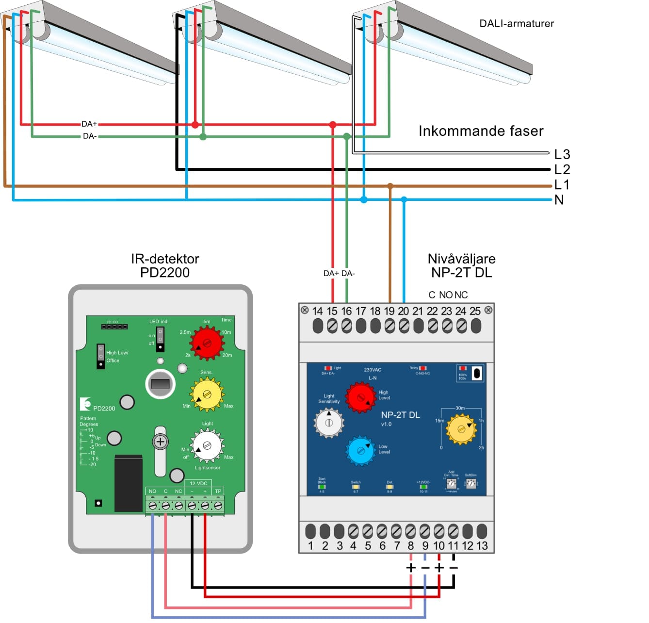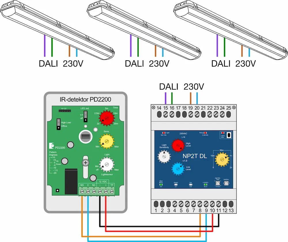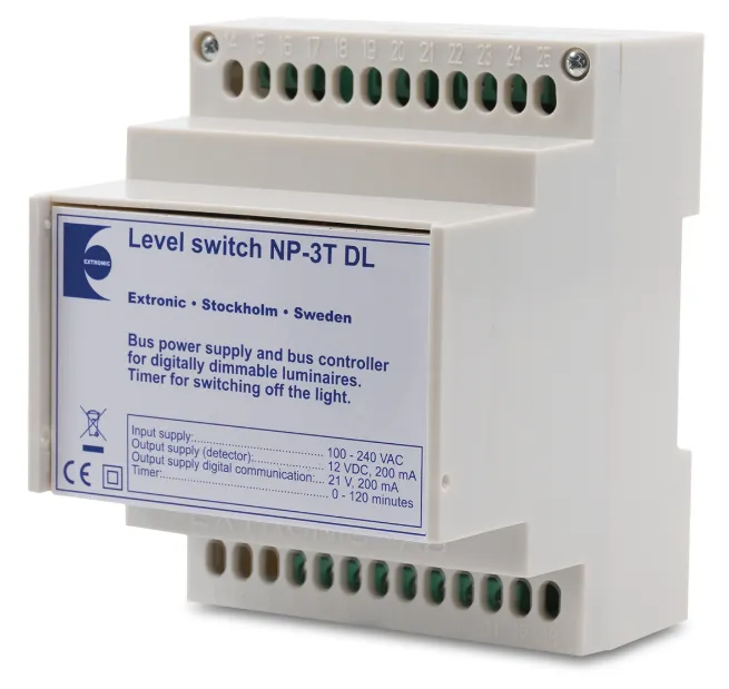 NP2T DL och NP3T DL är så kallade ”Nivåväljare” som även strömförsörjer DALI-bussen. NP3T DL erbjuder alla funktioner som NP2T DL, med den stora skillnaden att den även har dagsljusreglering via en ljussensor.