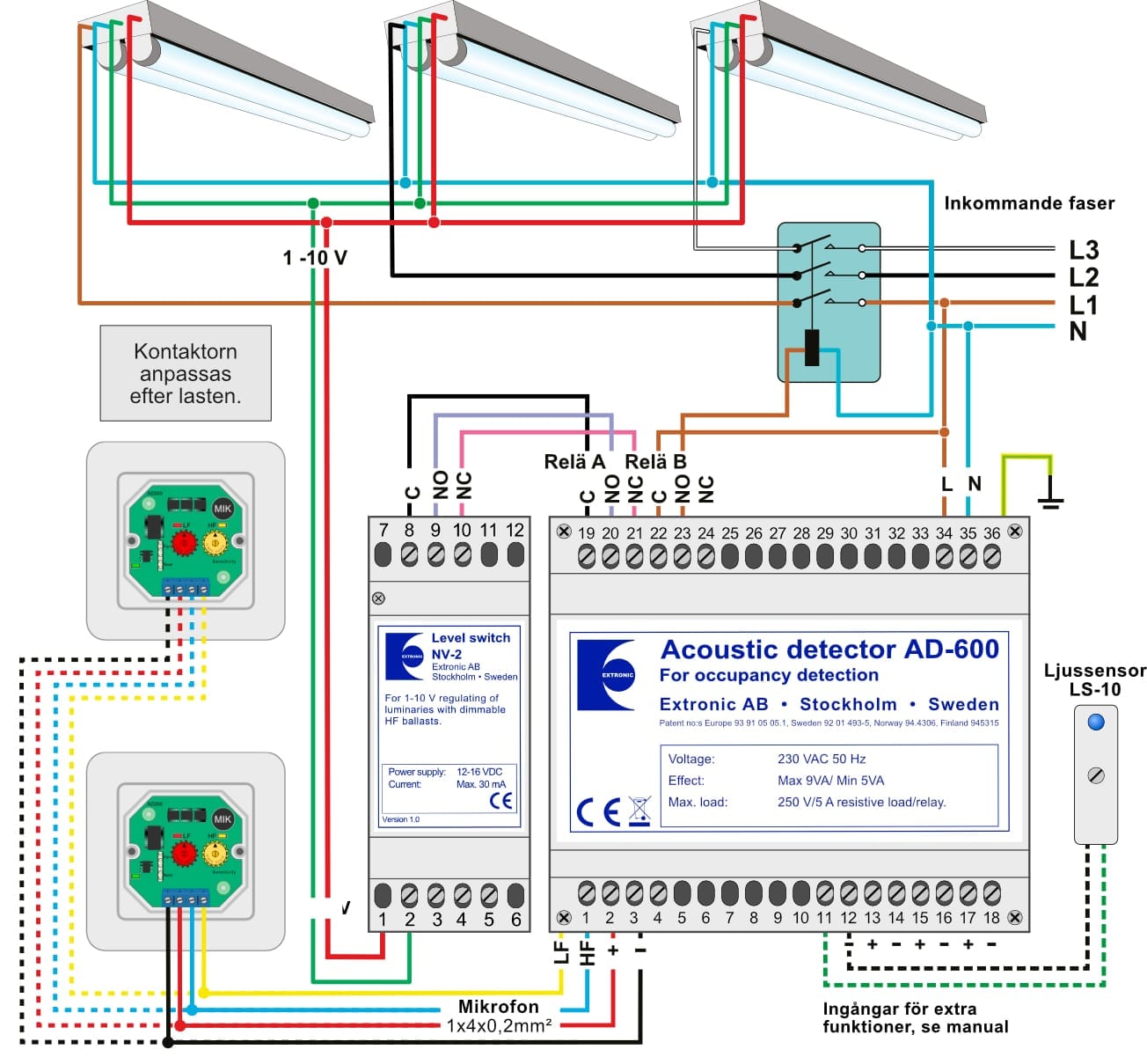 - Matningsspänning: 230 VAC.